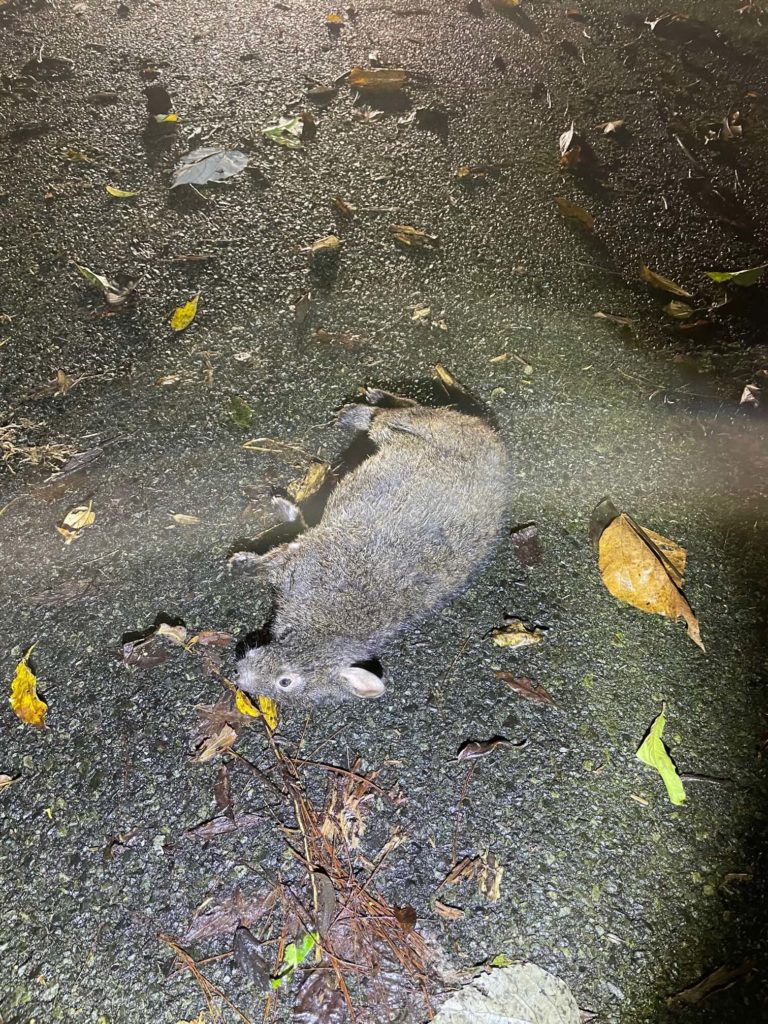元々奄美大島に生息していなかったマングースを人間の浅知恵でハブ退治のためにと言って森に放したことによって、ものすごい勢いでクロウサギや他の生き物が捕食され数を減らしました。莫大な費用をかけ2024年マングースは根絶され今、クロウサギなど数は回復してきていますが、完全ではありません。それから、森林伐採や開発も脅威です。ウサギの生息地が分断されて孤立してしまう。そうすると、遺伝的多様性が失われて、病気への抵抗力が弱まってしまいます。交通事故も問題です。道路で車に轢かれるウサギが後を絶ちません。