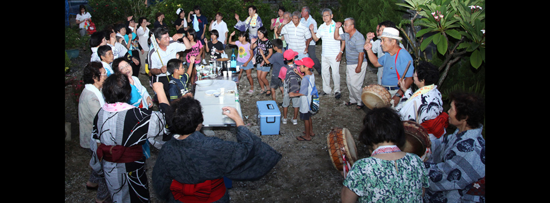 文化では、円集落では、浜下り、敬老豊年祭、種下ろしなどは今でもあります。私が覚えている行事としては種下ろしです。あの時代は、各家々を八月踊りをして回って、村の運営資金用の寄附を集めるという祭りでした。そこで郷土料理を食べました。あの時代はそういう時しかおいしいのを食べられなかったものですから、たくさん食べた記憶があります。