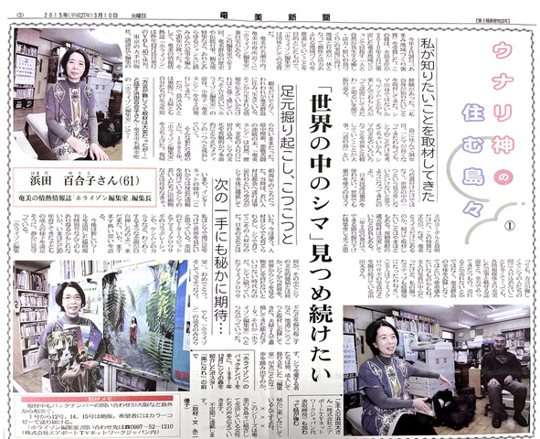 ちょうど20年目で休刊にしました。その理由は、いろんなフリーペーパーが出てきたし、ホームページも結構いろいろ出てきたので。一番初めの目標の「奄美からの発信」というのは、もう若い方たちが違う形で発信されているので、ある時代の役目は終えたかなと思い、休刊という言葉を使いました。実際は、終刊でしたが。